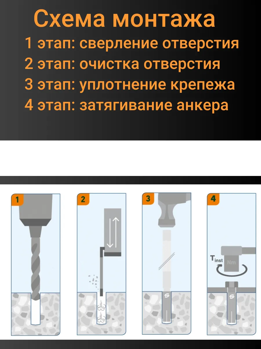 НазначениеДля крепления конструкцй в бетон с высокой нагрузкой