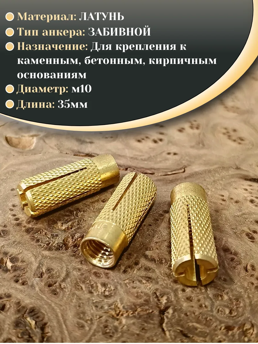 Анкер латунный М10 (10х35 мм) Sormat, 5 шт.