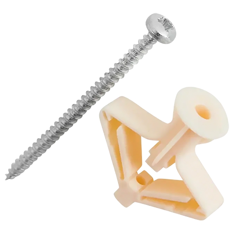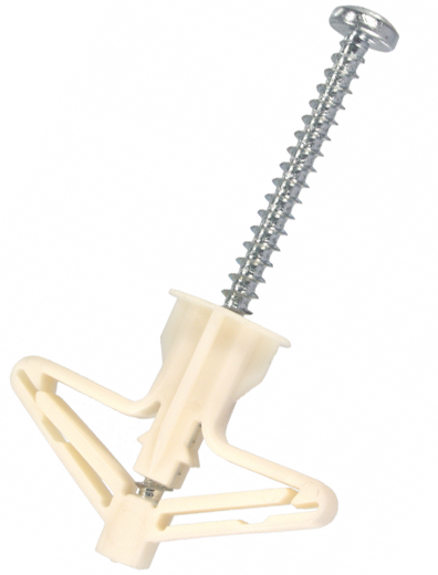 Пластиковый анкер для гипсокартона OLA SORMAT, известный больше как дюбель «бабочка», сконструирован для закрепления на стенах из ГКЛ предметов интерьера среднего веса. Дюбель раскрывающийся применяется на листах толщиной до 12 мм и требует наличия воздушных пустот под обшивкой. В процессе установки анкер раскрывается, создавая упор с обратной стороны листового материала. На его манжете предусмотрены стопорящие ребра для защиты от прокручивания. Термопластичный эластомер, из которого изготовлен дюбель для гипсокартона, делает его стойким к старению и долгосрочным нагрузкам. Анкер «бабочка» СОРМАТ комплектуется оцинкованным шурупом 4 х 60 мм. Материал основания: Гипсокартонный лист, Гипсокартонный лист композит, Строительные плиты на основе древесины.