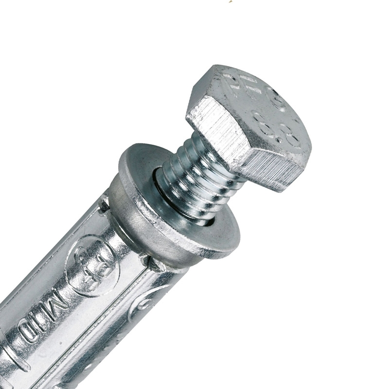 Разжимной оцинкованный анкер SORMAT SB состоит из оригинальной гильзы ES с четырьмя расклинивающимися сегментами, гайки, шайбы и резьбовой шпильки метрического стандарта с коническим элементом на конце. Четырехсторонний контролируемый распор обеспечивает надежную анкеровку в полнотелых материалах, бетоне низкого качества и в кирпиче с пустотами (диаметр не более М8). Высокая степень расклинивания позволяет использовать анкер-шпильку для монтажа тяжелых конструкций, подверженных ветровым и динамическим нагрузкам. Распорный анкер-гильза СОРМАТ СБ не слишком требователен к точности просверливаемых отверстий. Все его составные элементы выполнены из оцинкованной стали, что повышает сопротивляемость метиза процессам коррозии.