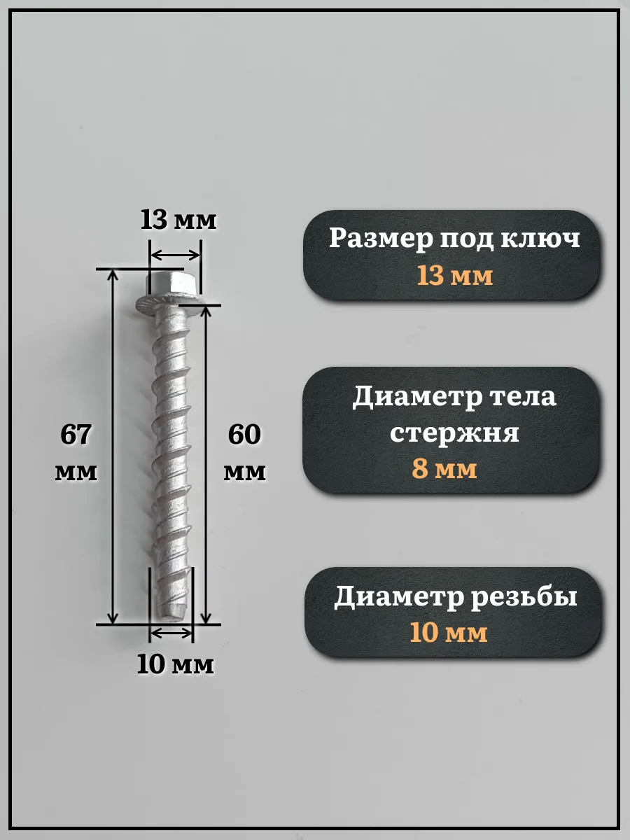 Анкер-шуруп по бетону М10х60 мм CON-R , 4шт.