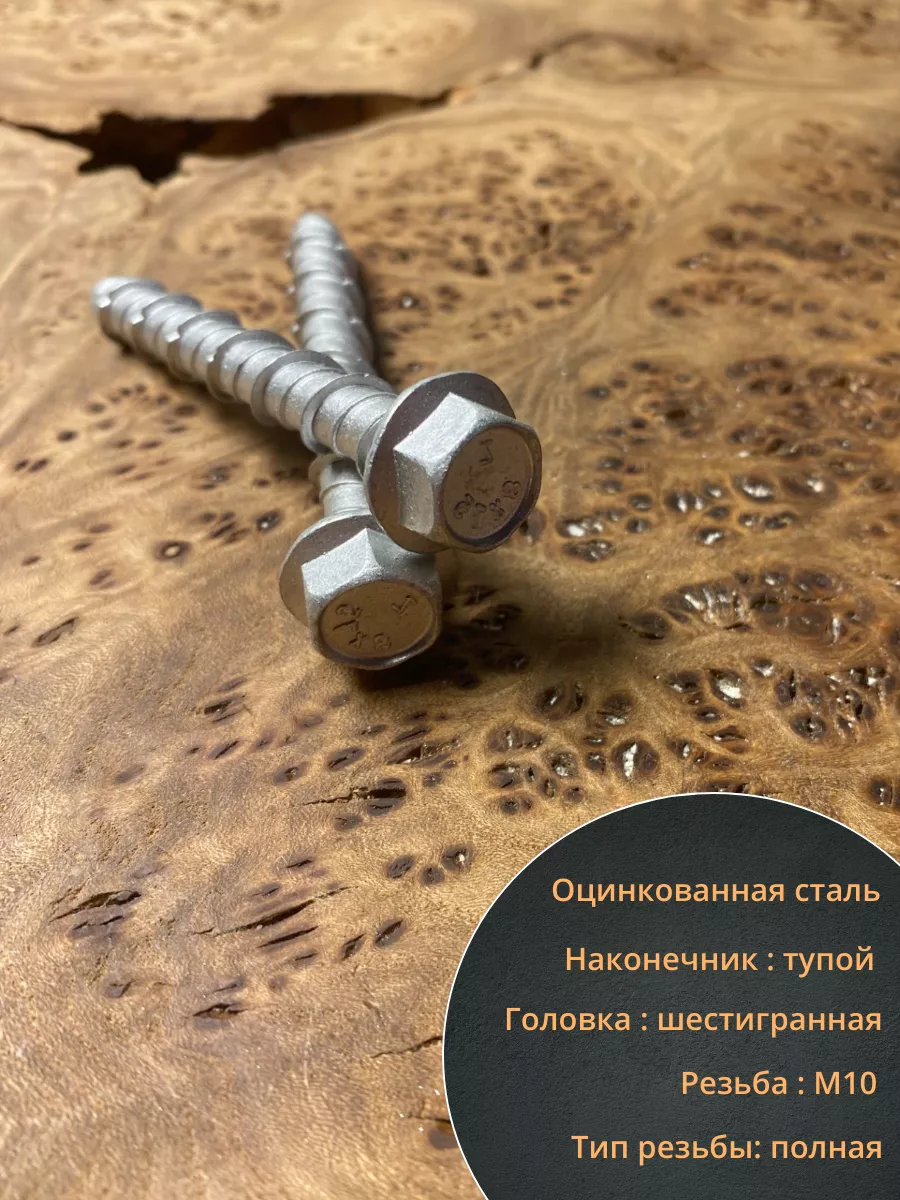 стержня, покрытого резьбой с широким шагом и специальными насечками на гребнях в конце стержня, тупого конца, головки – шестигранной или потайной.