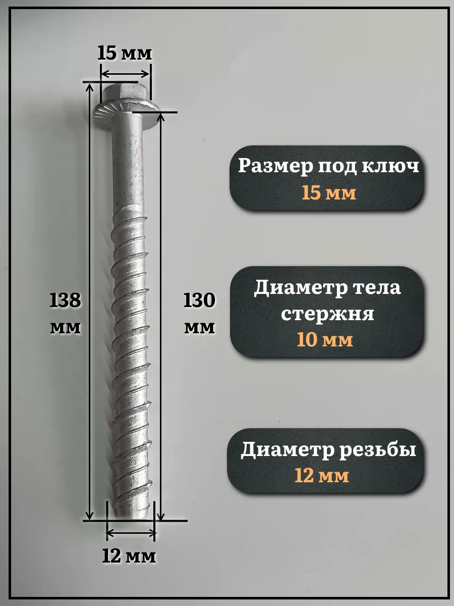 Анкер-шуруп по бетону М12х130 мм CON-R , 10 шт.