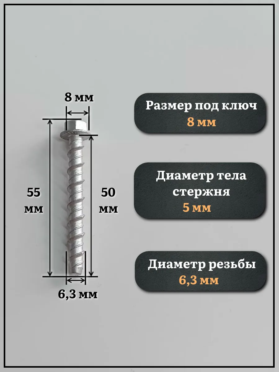 | Анкер-шуруп по бетону М6,3х50 мм CON-R , 20 шт. | 11211 | 1 шт. |