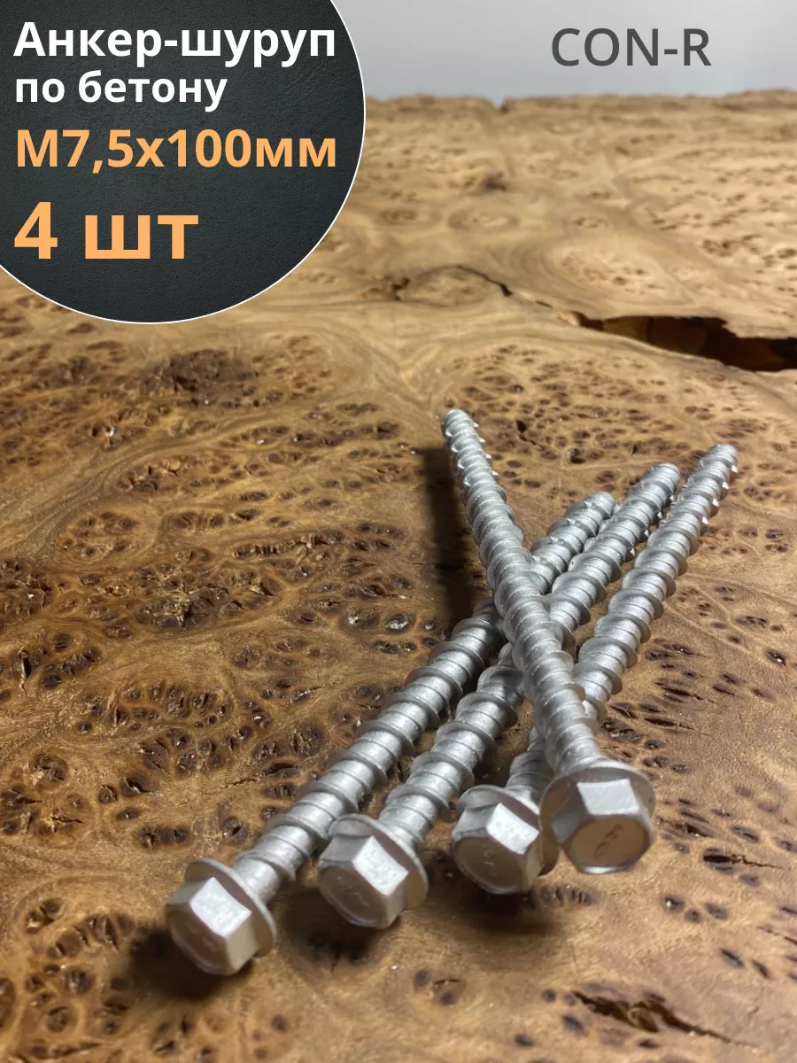 Анкер-шуруп по бетону М7,5х100 мм CON-R , 4 шт.
