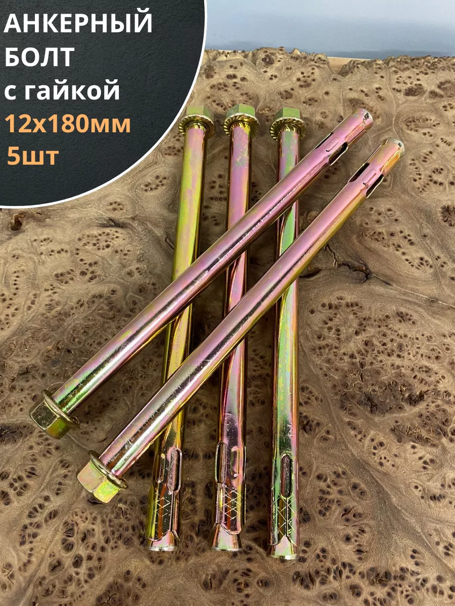 Анкерный болт с гайкой 12x180 мм (5 шт.)