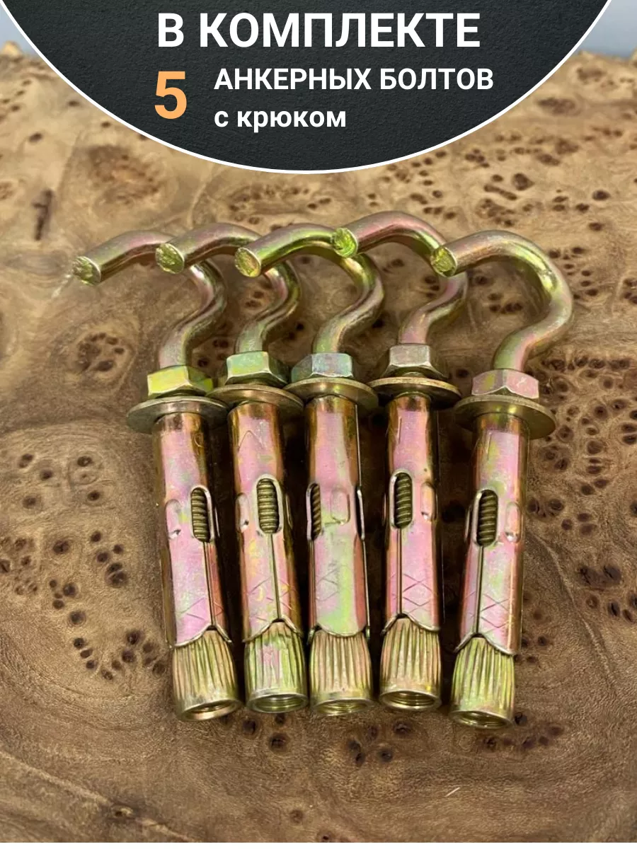 Анкерный болт с крюком 8х60 мм, 5 шт.