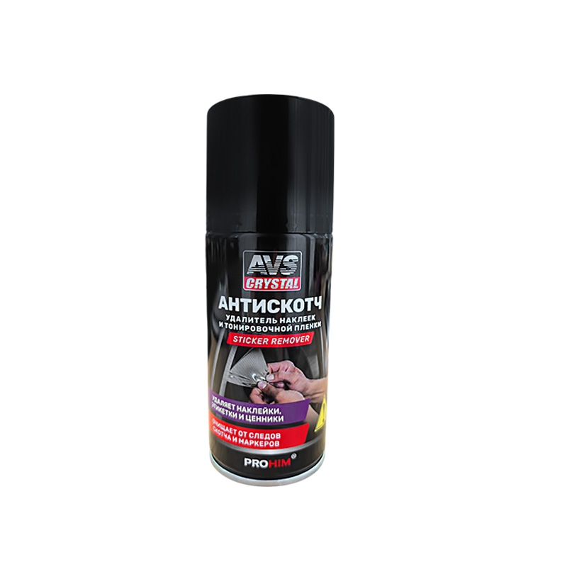 Антискотч-удалитель наклеек и тонировочной пленки 210 мл аэрозоль AVS AVK-697 – это высокоэффективное средство предназначено для быстрого и безопасного удаления наклеек, тонировочной пленки, самоклеящихся этикеток, липких лент, остатков скотча, жевательной резинки, каучука, дёгтя. Устраняет следы от перманентных маркеров и фломастеров. Применяется на любых поверхностях: стеклянных, металлических, пластиковых, керамических, в том числе на окрашенных. Гелеобразный состав после распыления не стекает с вертикальных поверхностей. Проникает под поверхность наклейки и растворяет клей. Не вызывает коррозию. Подходит для наружных и внутренних работ, а также для использования в быту. Обладает приятным цитрусовым ароматом.