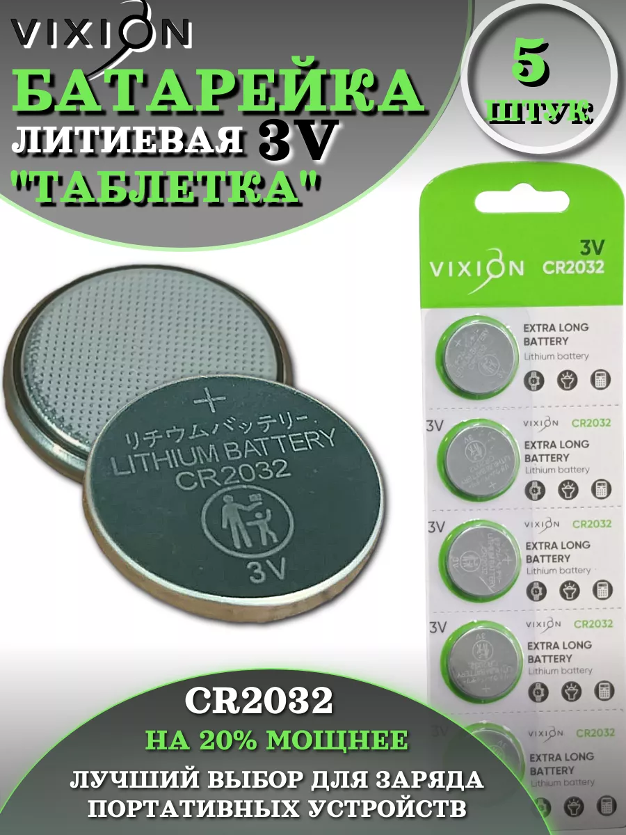 Батарейка литиевая CR2032 тип 3 В Таблетка 5шт в упаковке