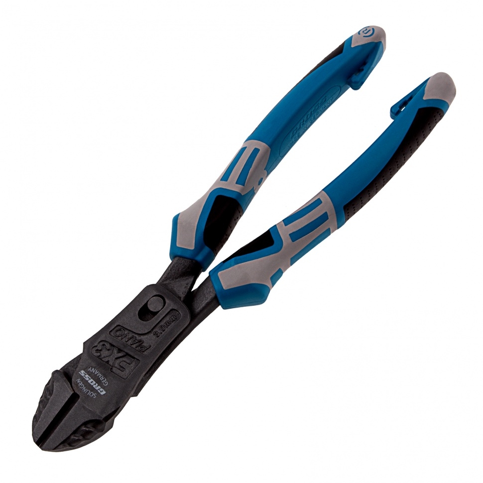 Усиленные бокорезы Gross с трехкомпонентными рукоятками, предназначены для разрезания кабелей, проводов, проволоки, рояльных струн и т. д. Усиленная конструкция позволяет бокорезам перекусывать не только алюминий, медь, пластмассу, но и более жесткие материалы из стали диаметром до 3,5 мм. Встроенный рычажный механизм и смещенный непосредственно к режущим кромкам шарнир увеличивают усилие реза на 50%.