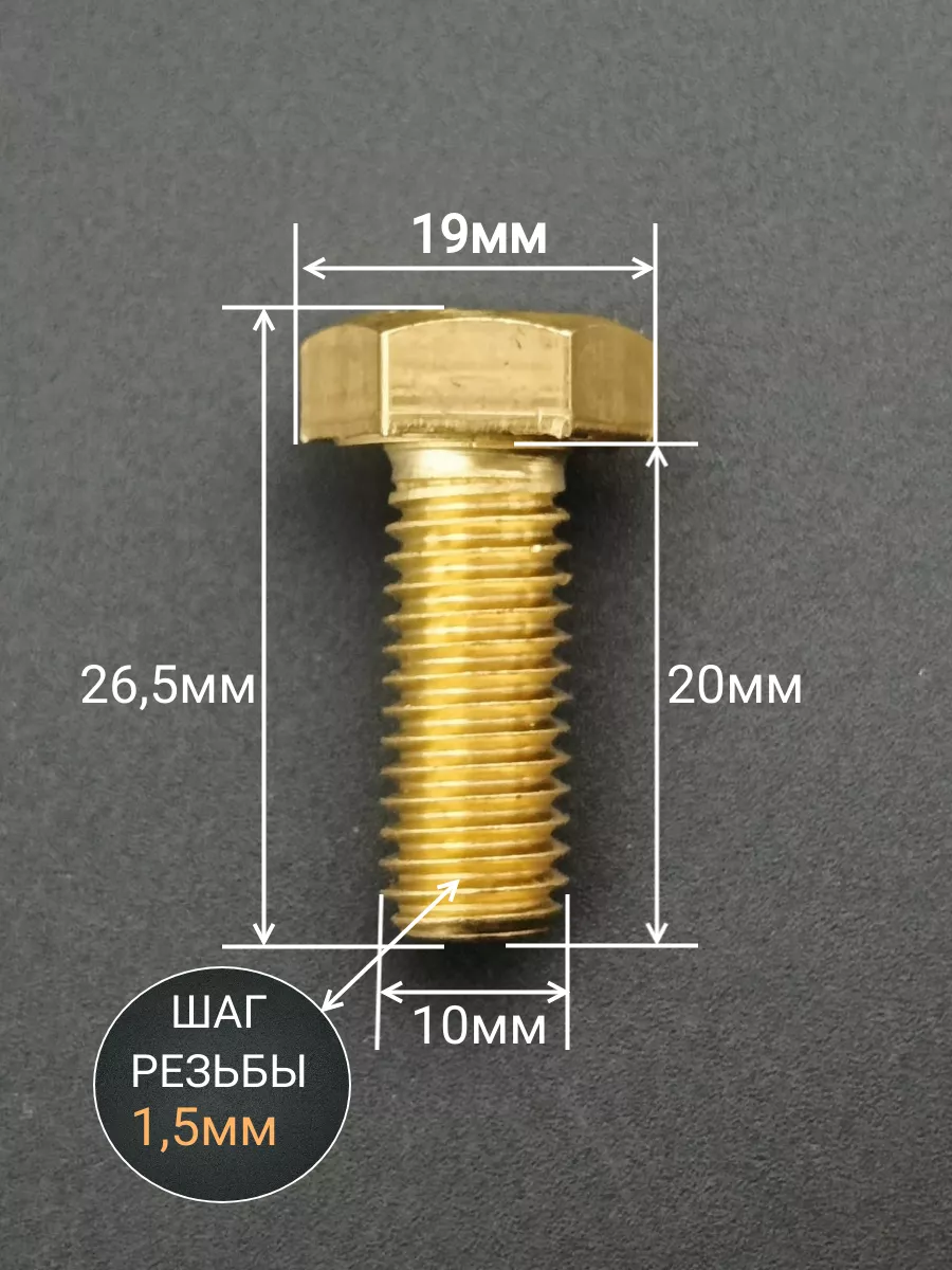 Болт латунный М10х20 DIN933,10 шт
