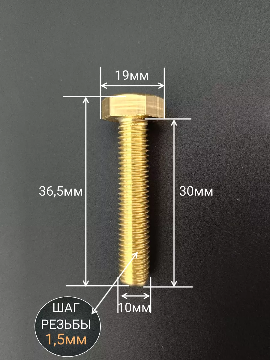 Болт латунный М10х30 DIN933,10 шт
