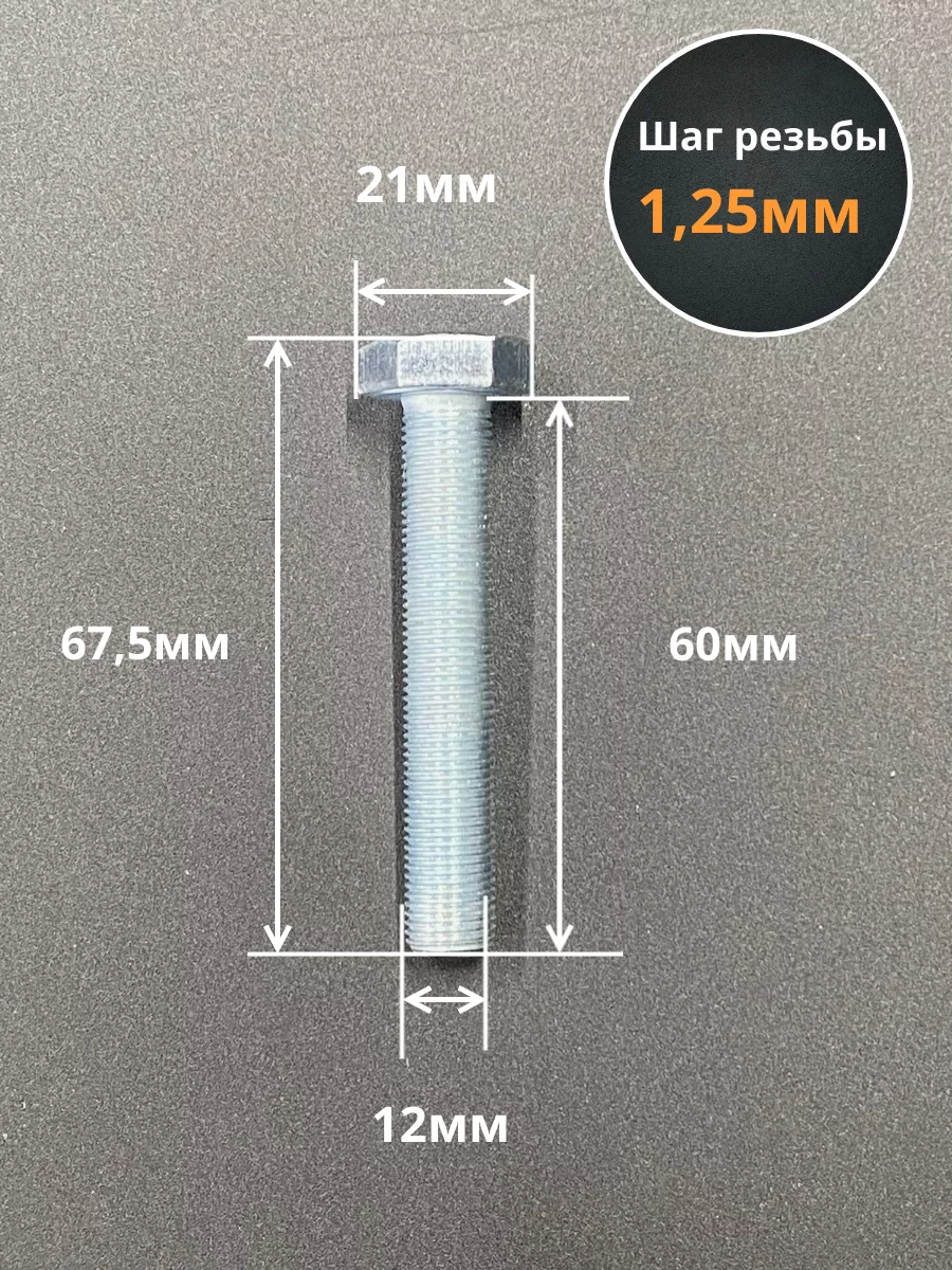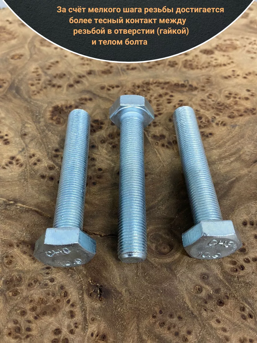 Болт М12х1,25х60 мелкая резьба к.п.10.9 ОЦ DIN961, 10 шт.