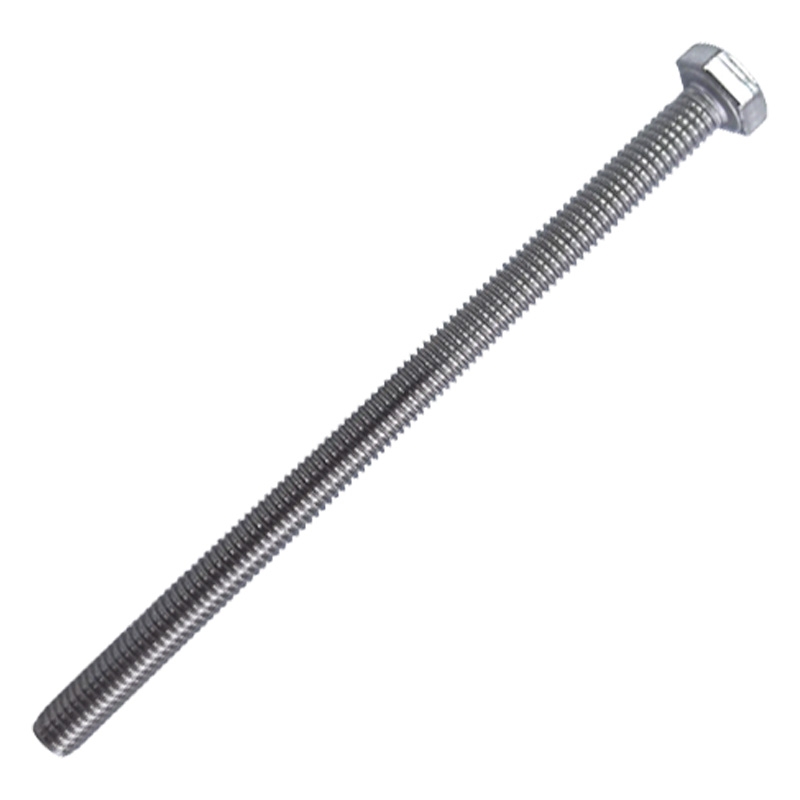 Материалом для болта служит нержавеющая сталь класса A2. У изделия есть цилиндрический стержень c полной резьбой и шестигранная головка. Шляпка передает крутящий момент от ключа к крепежу при завинчивании. Для создания прочных резьбовых соединений крепеж используется в комбинации с шайбой и гайкой или завинчивается в отверстия с нарезанной резьбой. Чтобы исключить электрохимическую коррозию, шайбы с гайкой делаются из коррозионно-устойчивой стали либо нейтральных полимерных материалов.