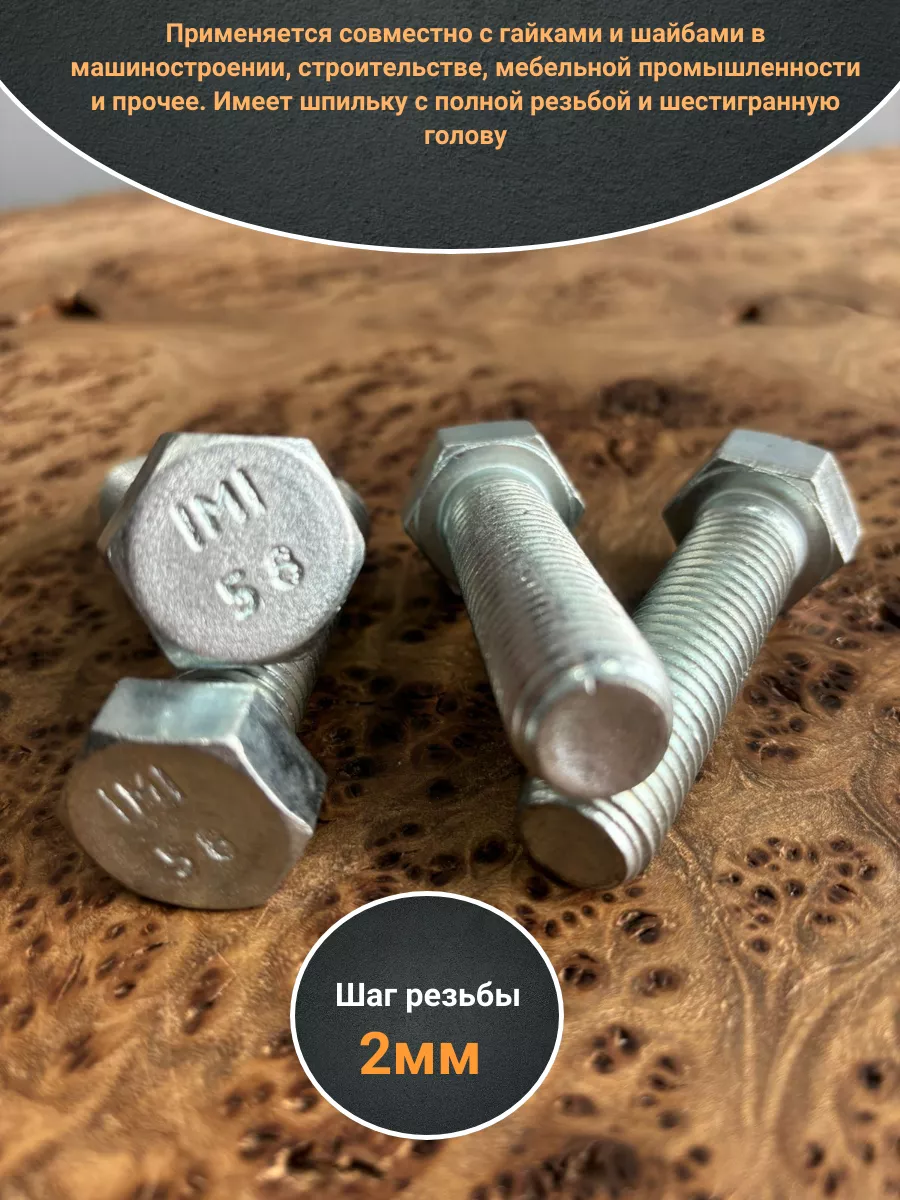 Имеет шпильку с полной резьбой и шестигранную голову. Длина болта определяется по длине шпильке. Стандартный класс прочности для болтов от 4,8 до 5,8. Самый распространенный вид болтов применяется совместно с гайками и шайбами.