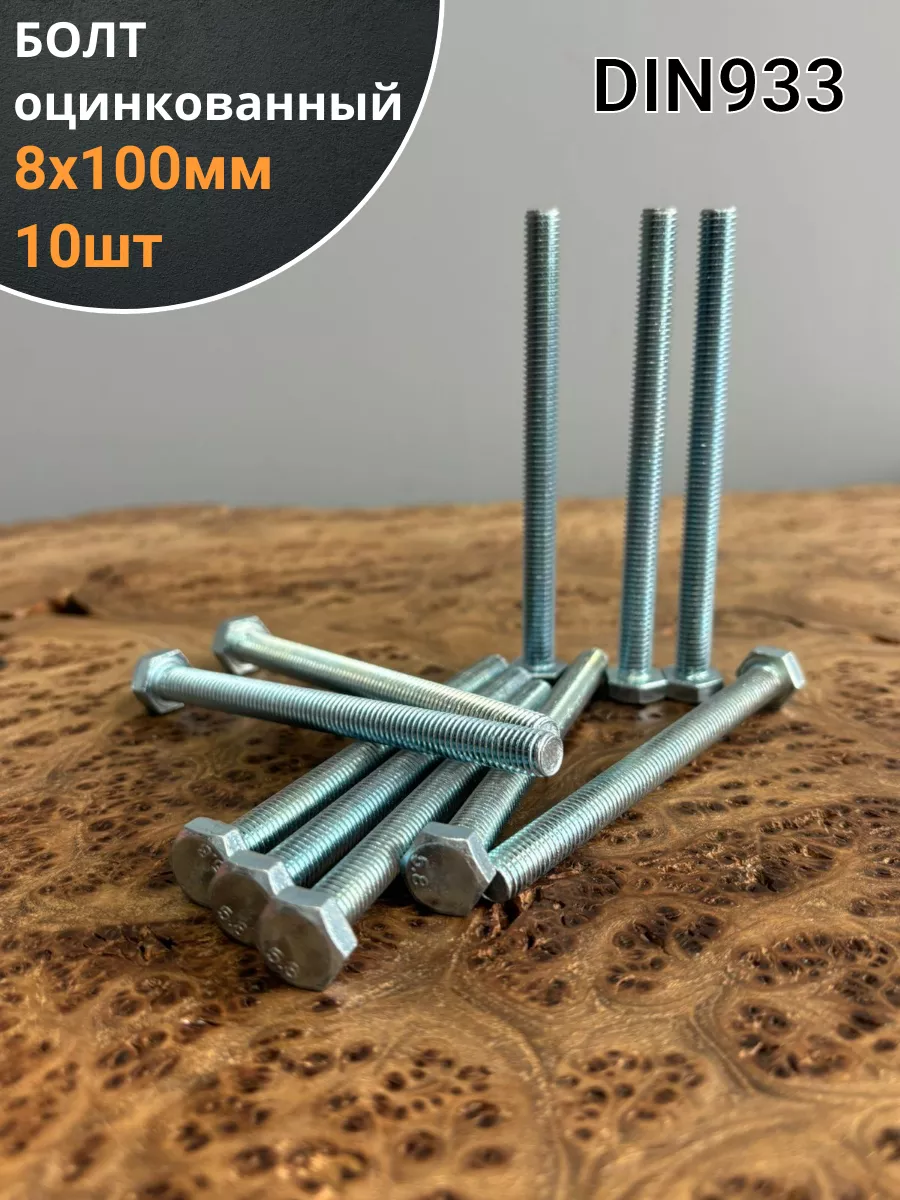 Болт оцинкованный М8х100 DIN933 10 шт.