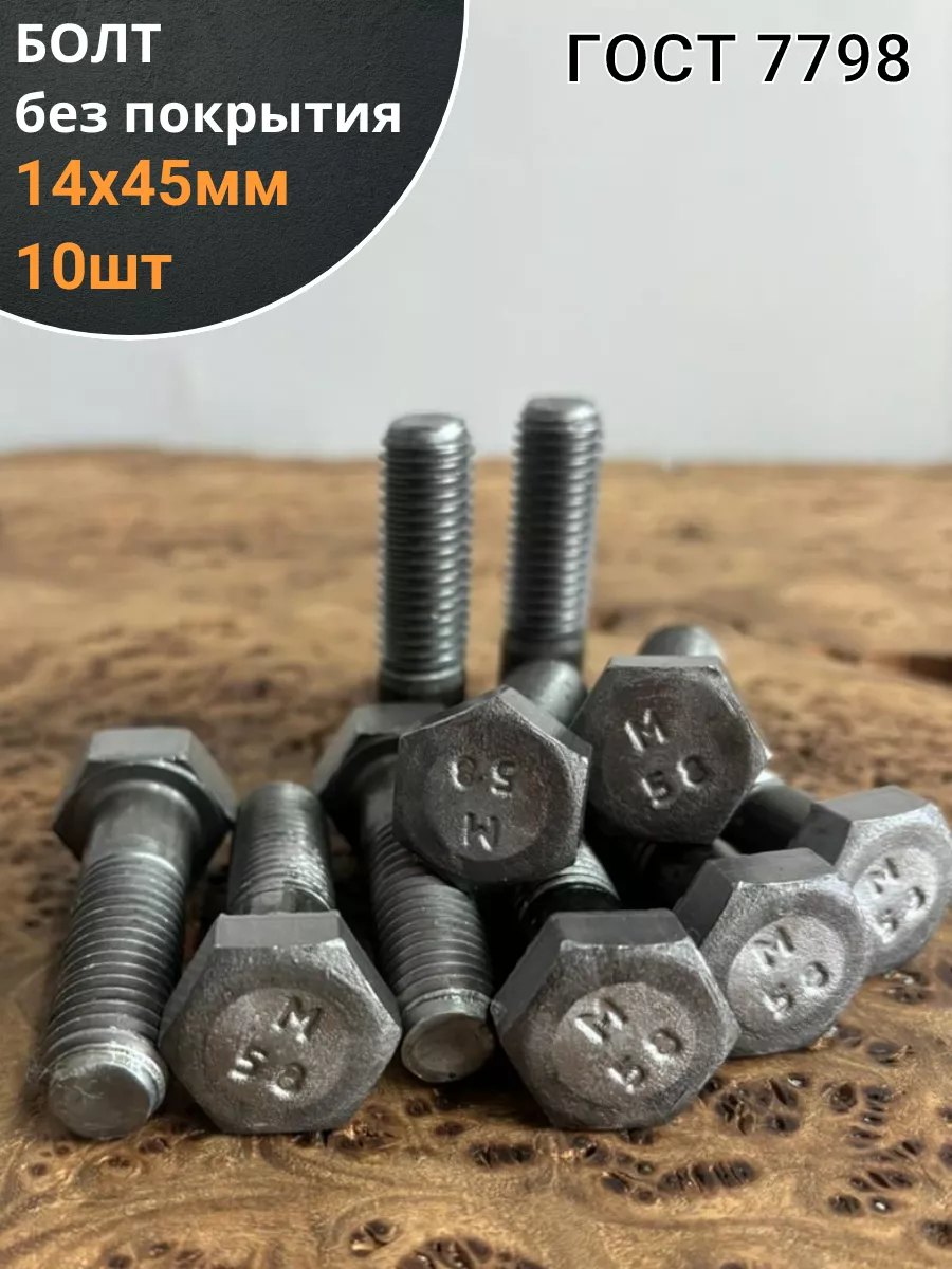 Болт без покрытия 14х45 мм ГОСТ 7798, 10 шт.