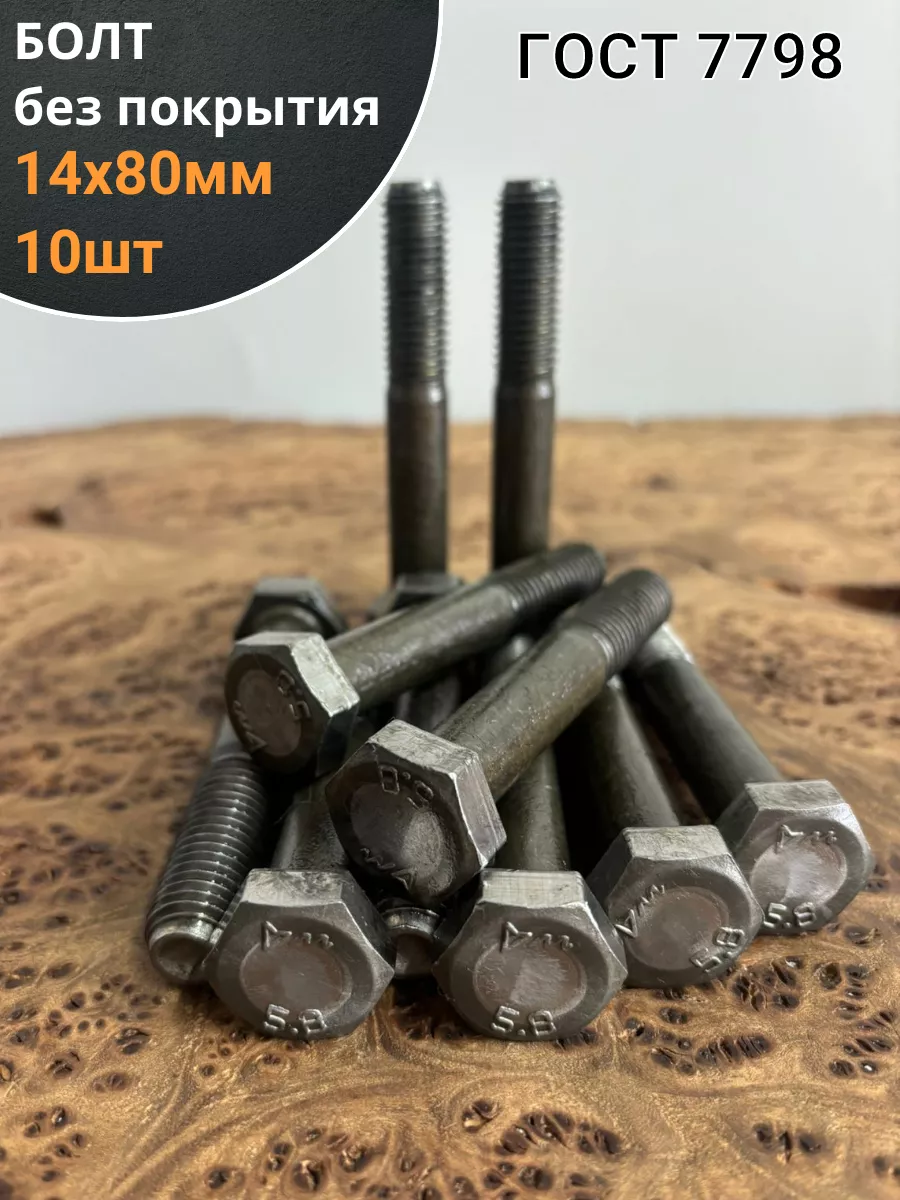 Болт без покрытия 14х80 мм ГОСТ 7798, 10 шт.
