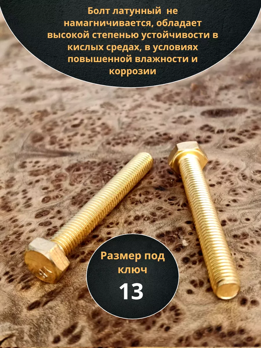 Латунный шестигранный болт DIN 933 подходит для совместного использования с забивными анкерами, гайками шайбами в многих отраслях промышленности. Благодаря сбалансированному содержанию меди и цинка в сплаве крепеж из латуни сочетает легкость, пластичность и прочность. Латунные болты DIN 933 применяются в авиации, атомной промышленности, приборостроении и реставрационных работах, где они особенно востребованы за неподверженность процессам коррозии и окислению, немагнитность, искробезопасность и эстетику внешнего вида. Благодаря сбалансированному содержанию меди и цинка в сплаве крепеж из латуни сочетает легкость, пластичность и прочность.