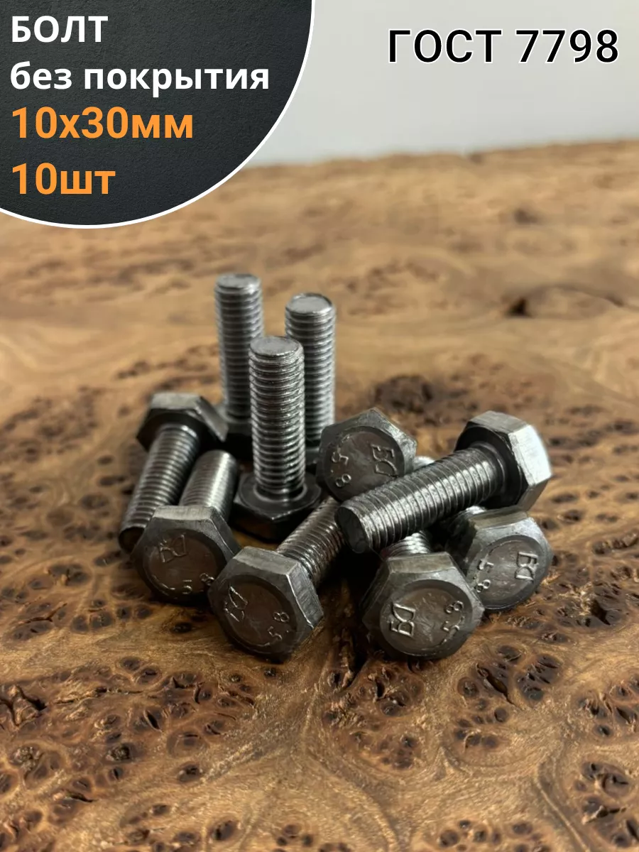 Болт без покрытия 10х30 мм ГОСТ 7798, 10 шт.