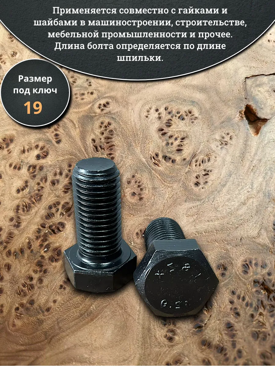 Болт высокопрочный 12х35 мм, DIN933, к.п. 12.9 черный, 2шт.