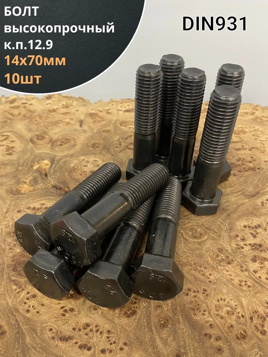Болт М14х70 мм, DIN931, высокопрочный 12.9 , 10шт.