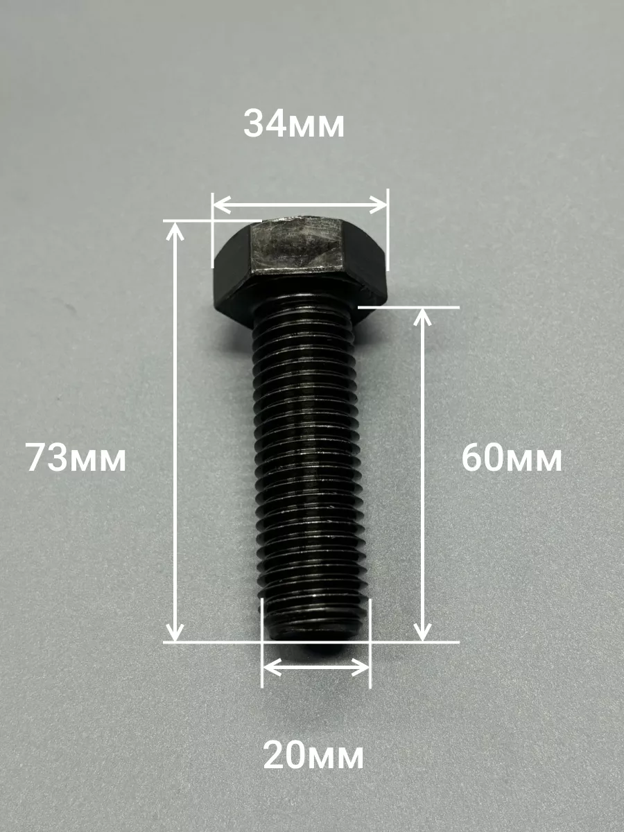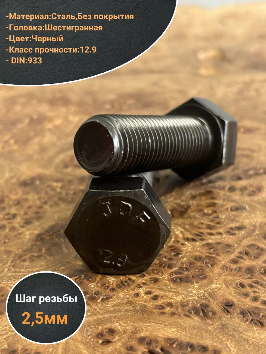 Болт высокопрочный 20х60 мм, DIN933, к.п.12.9 черный , 2 шт