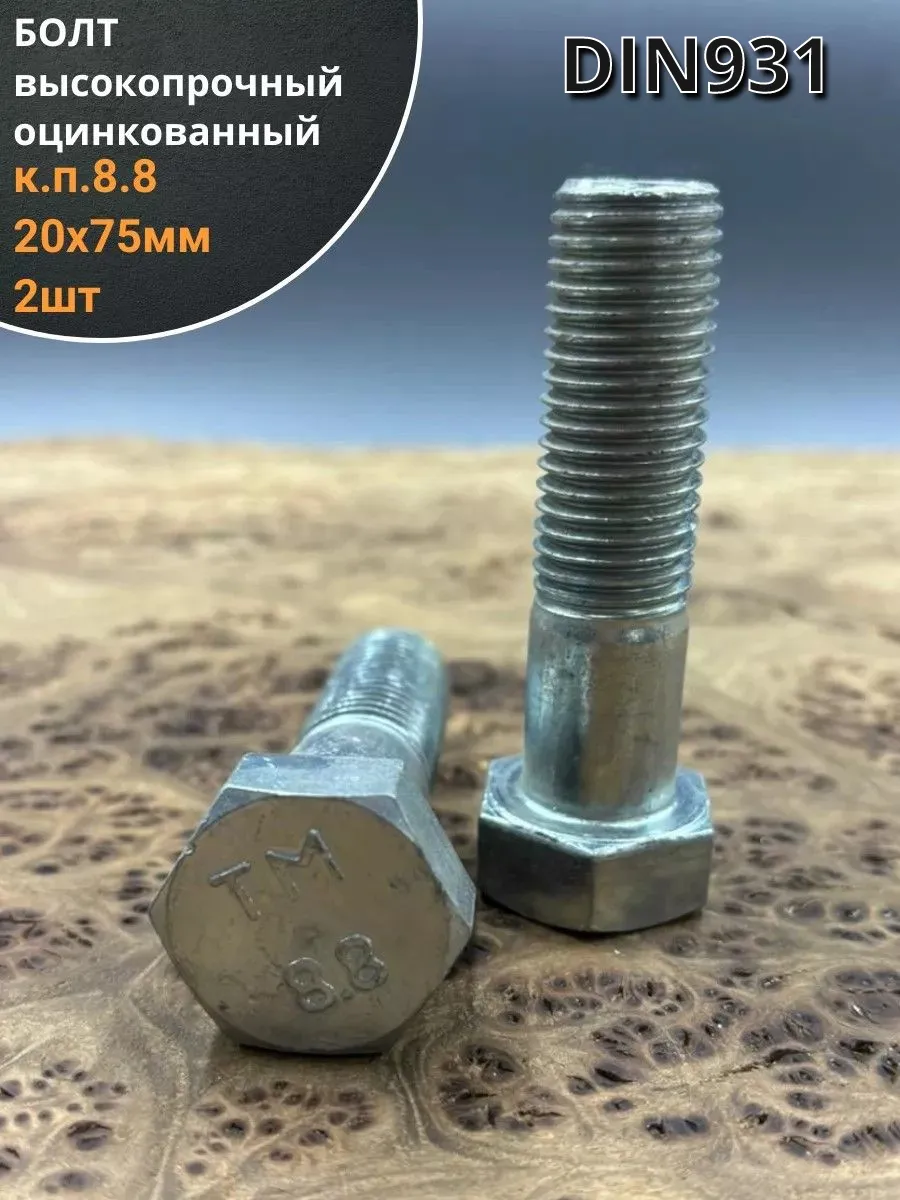 Болт высокопрочный М20х75 мм ОЦ к.п.8.8 DIN931 (2 шт.)