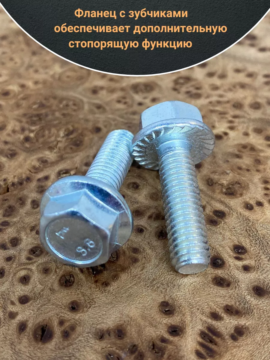 Болт с шестигранной головкой и фланцем используют как крепление различных деталей или конструкций. Данный болт используют только вместе с шайбой или гайкой. Болт DIN 6921 изготавливают из оцинкованной стали. Модель имеет как резьбу на 4/5 длине стержня, так и полную резьбу, а так же плоский фланец и шестигранную головку. Данная модель пользуется популярностью на строительно-монтажных площадках, установка болта не требует использование отдельной шайбы