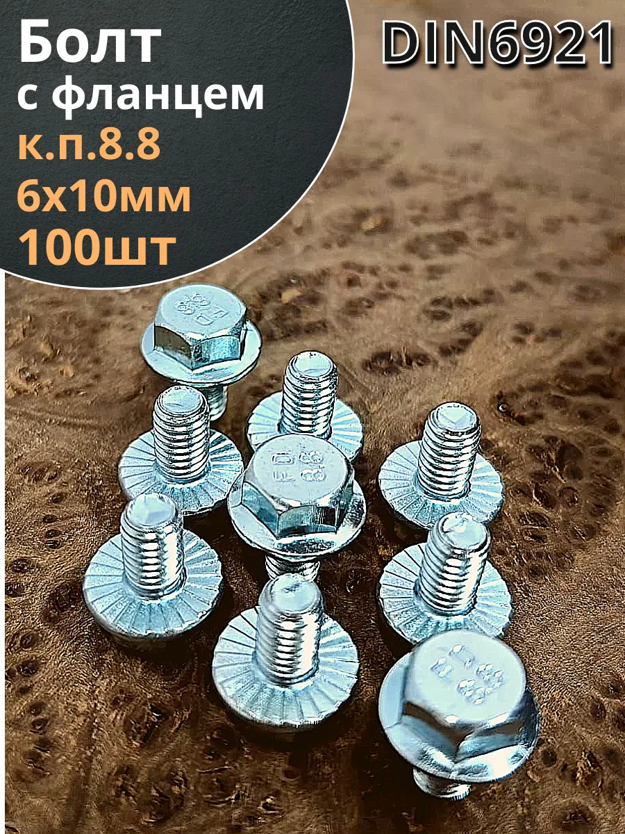 Болт М6х10 с фланцем к.п.8.8 ОЦ DIN6921, (100 шт.)