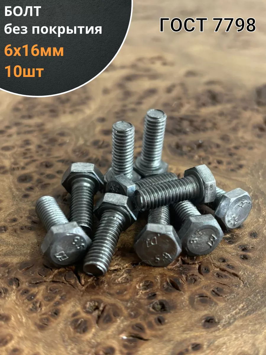Болт без покрытия 6х16 мм ГОСТ 7798, 10 шт.