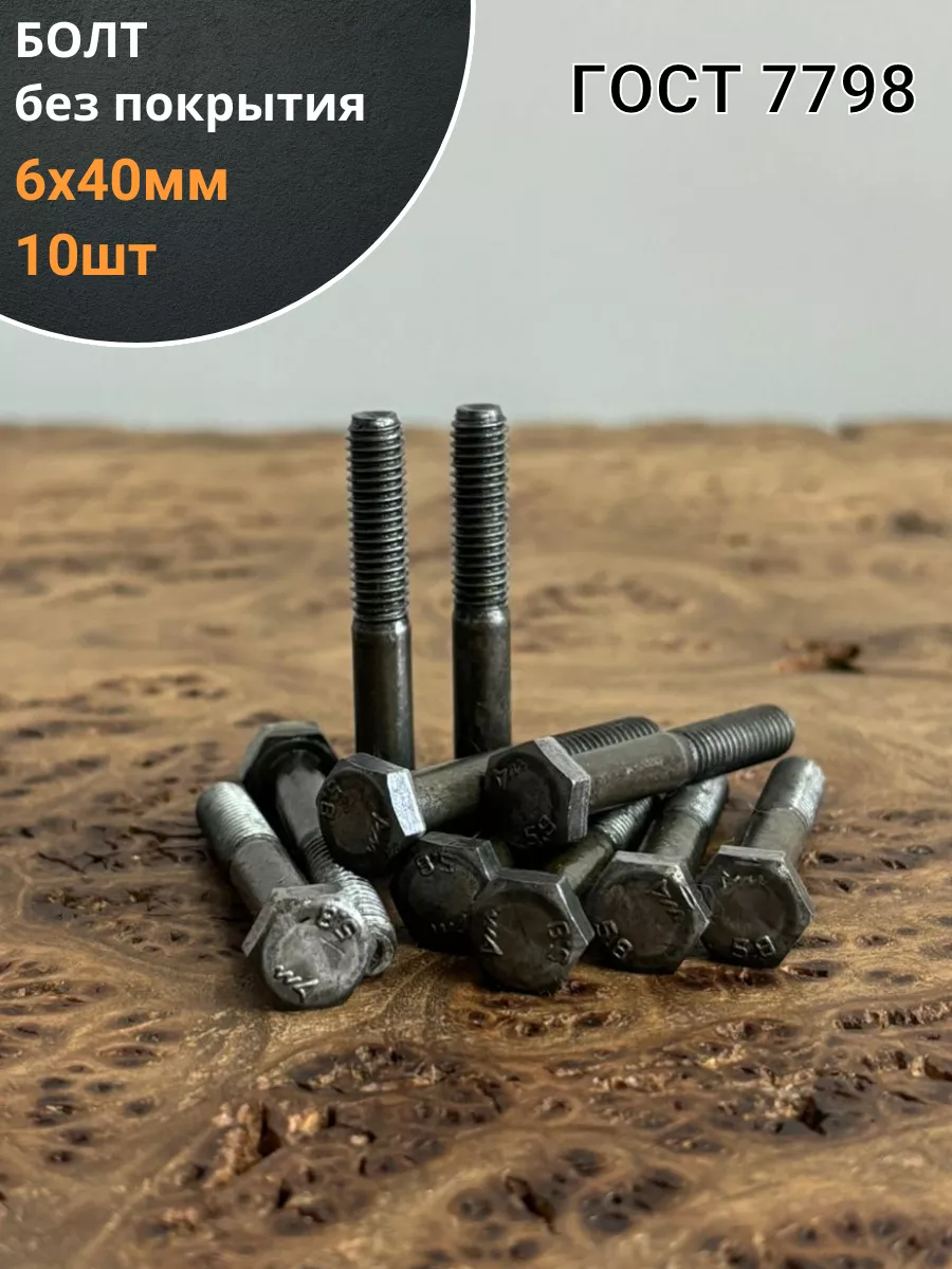 Болт без покрытия 6х40 мм ГОСТ 7798, 10 шт.