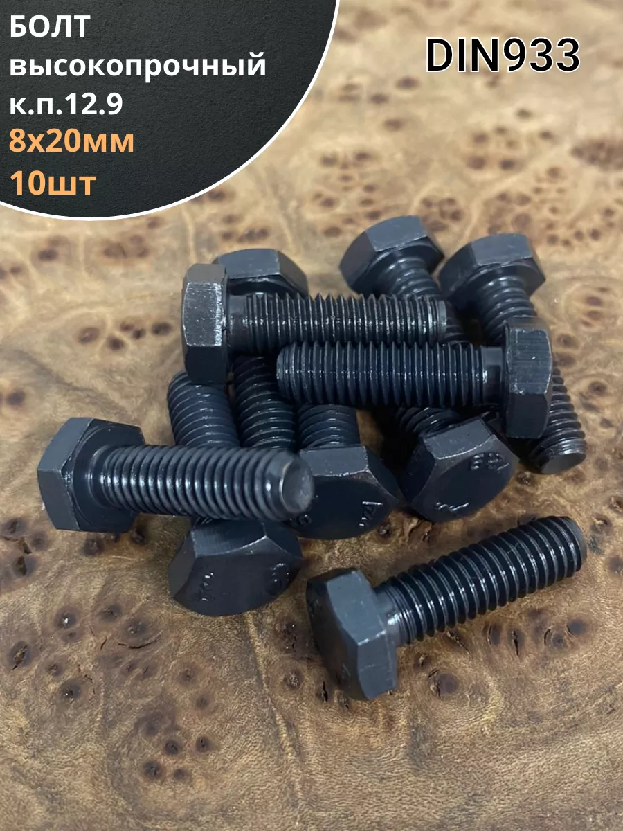 Болт М8х20 мм, DIN933, высокопрочный 12.9, 10шт