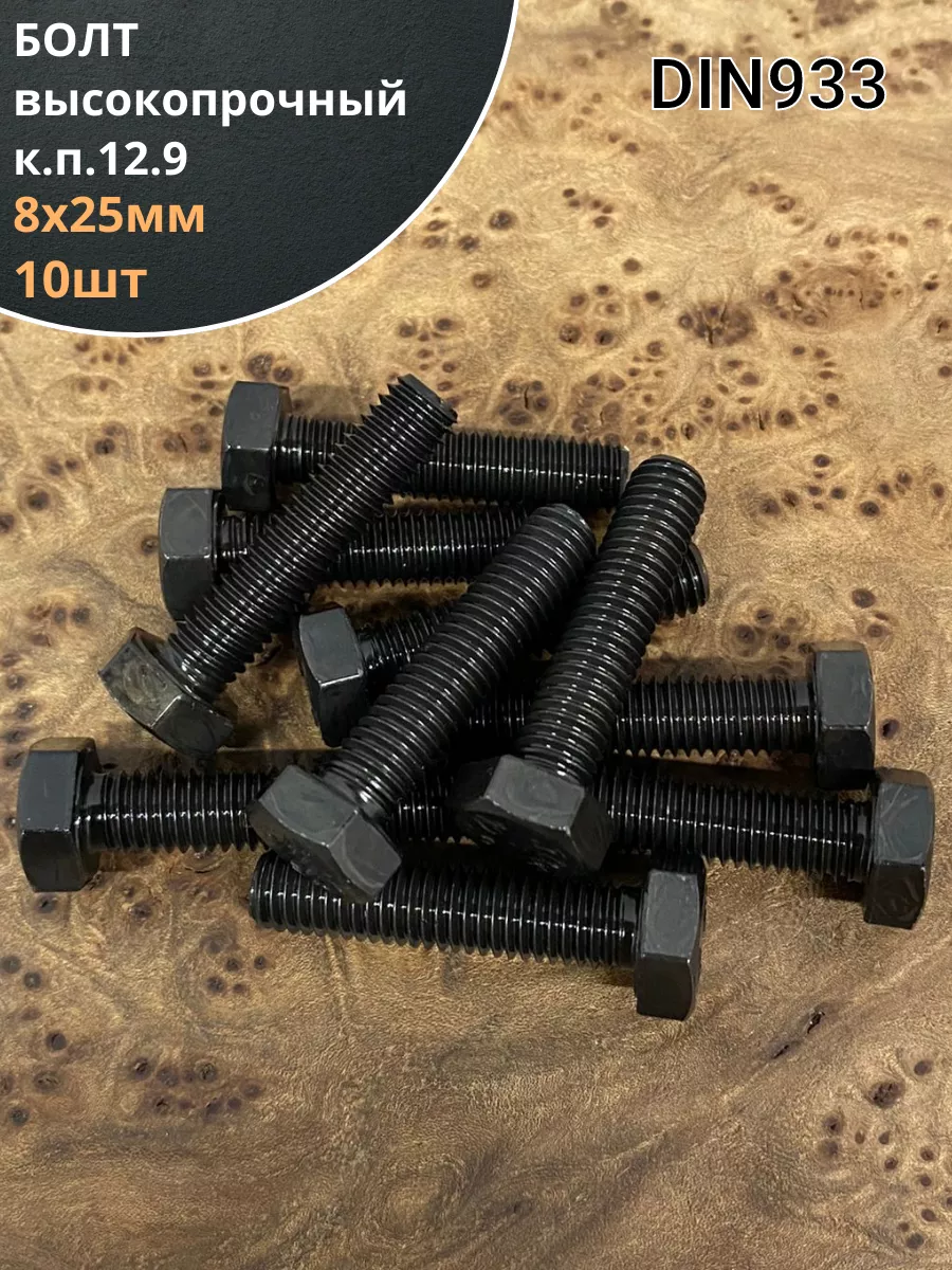Болт высокопрочный 8х25 мм, DIN933, к.п.12.9 черный, 10шт.