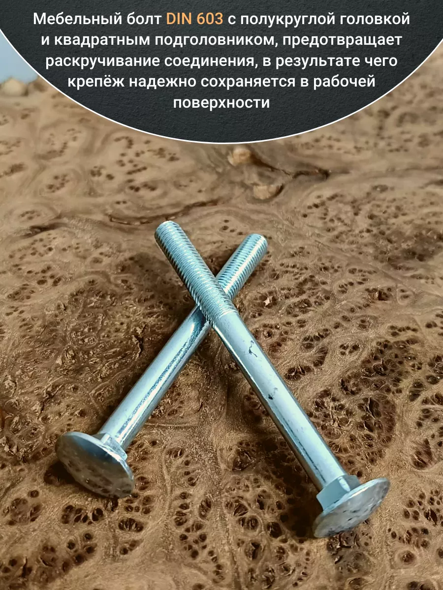 Болт мебельный М10х100 полукруглая головка ОЦ DIN 603,20 шт.