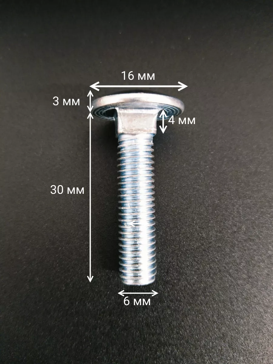 Болт мебельный М6х30 мм полукруглая головка DIN 603, 20 шт.
