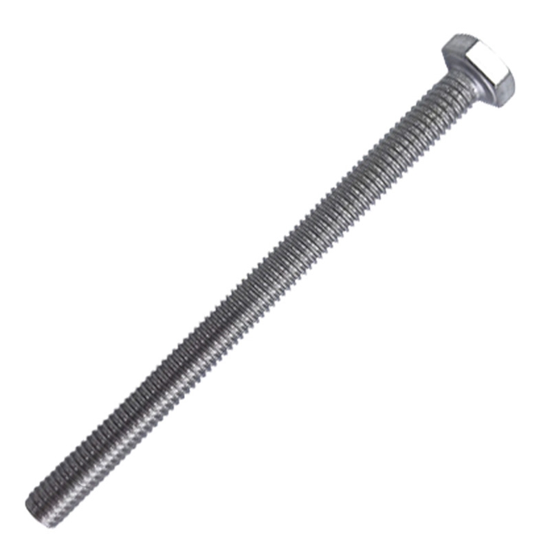 Материалом для болта служит нержавеющая сталь класса A2. У изделия есть цилиндрический стержень c полной резьбой и шестигранная головка. Шляпка передает крутящий момент от ключа к крепежу при завинчивании. Для создания прочных резьбовых соединений крепеж используется в комбинации с шайбой и гайкой или завинчивается в отверстия с нарезанной резьбой. Чтобы исключить электрохимическую коррозию, шайбы с гайкой делаются из коррозионно-устойчивой стали либо нейтральных полимерных материалов.