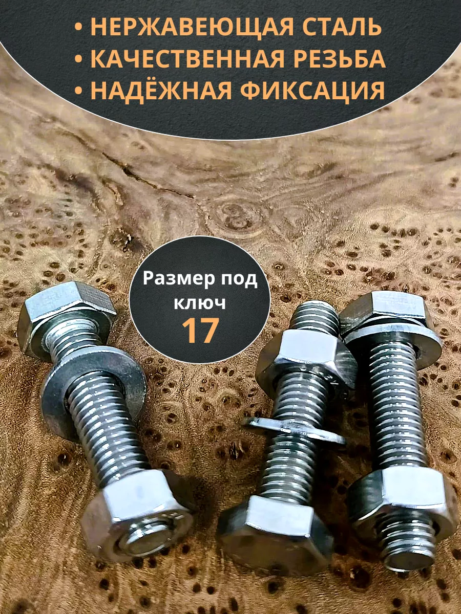 Болт нержавеющий 10х45 мм DIN933 с гайкой и шайбой, 10шт