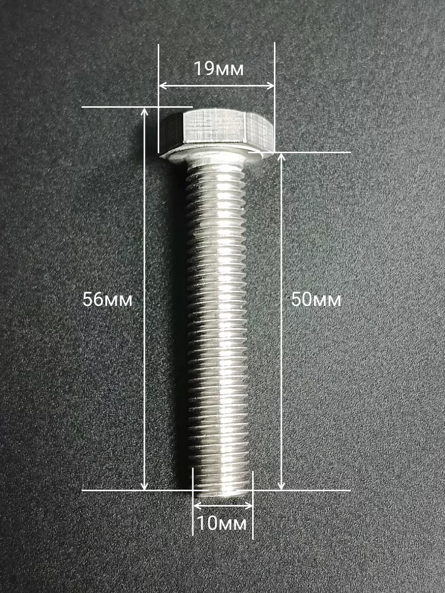 Болт нержавеющий 10х50 мм DIN933 с гайкой и шайбой, 10шт.