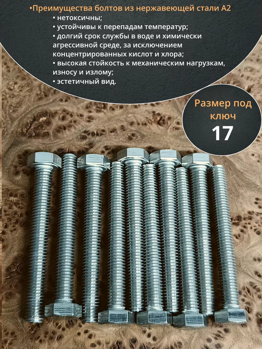 Болт нержавеющий 10х60 мм DIN933 10шт