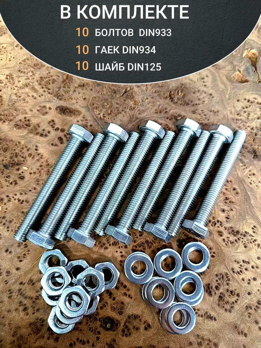 Болт нержавеющий 10х80 мм DIN933 с гайкой и шайбой, 10шт