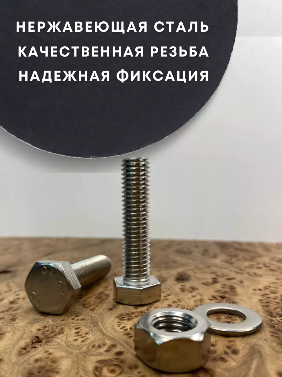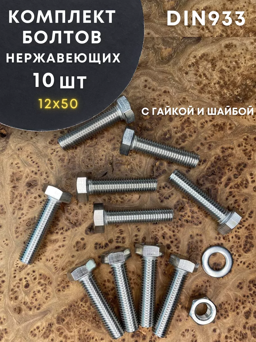 Болт нержавеющий 12х50 DIN933 с гайкой и шайбой, 10 шт.