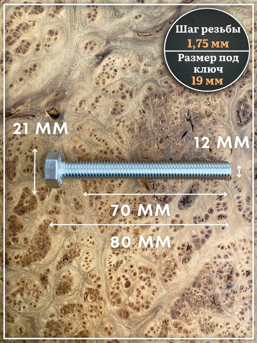 Болт нержавеющий 12х70 DIN933 с гайкой и шайбой, 10 шт.