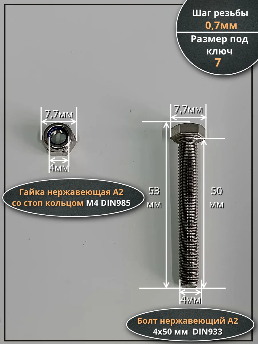 | Болт нержавеющий 4х50 мм DIN 933 со стоп гайкой , 50 шт. | 11546 | 1 шт. |