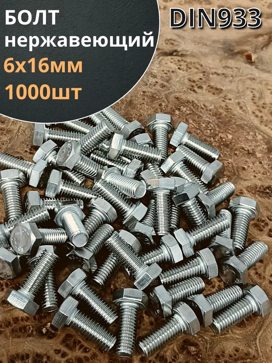 | Болт нержавеющий 6х16 мм DIN933 100шт | АС1300601693D07ф100 | 1 шт. |