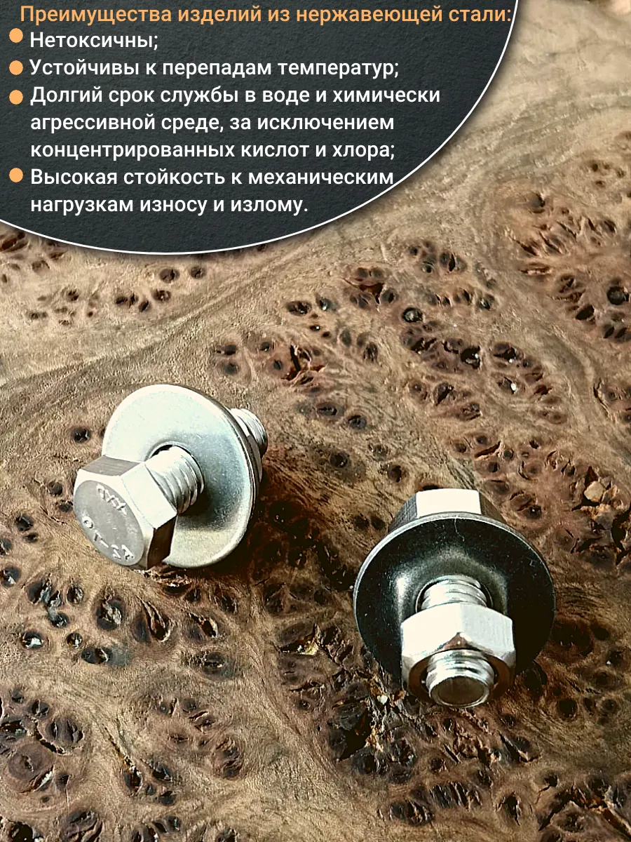 Болт нержавеющий 6х20 мм DIN933 с гайкой и шайбой