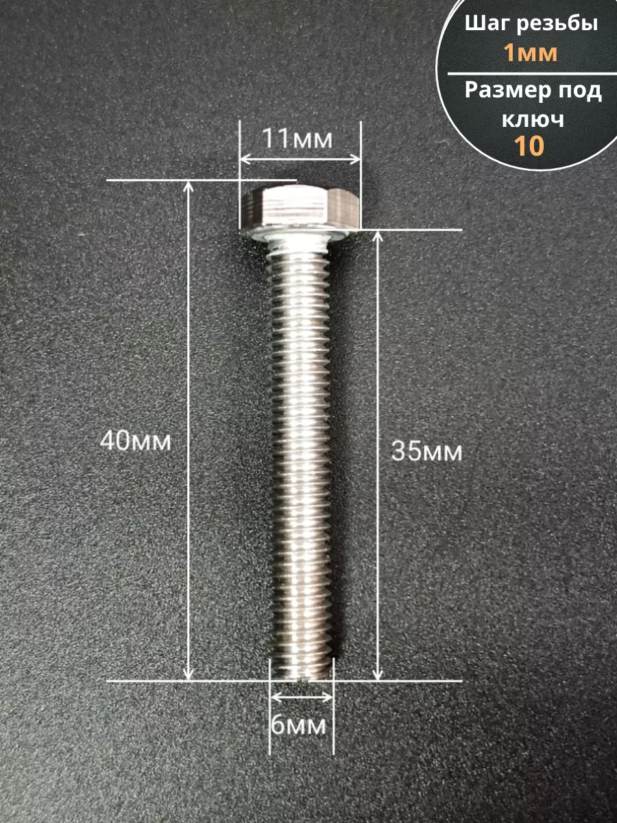 | Болт нержавеющий 6х35 мм DIN933 10шт | АС1300603593G07 | 1 шт. |