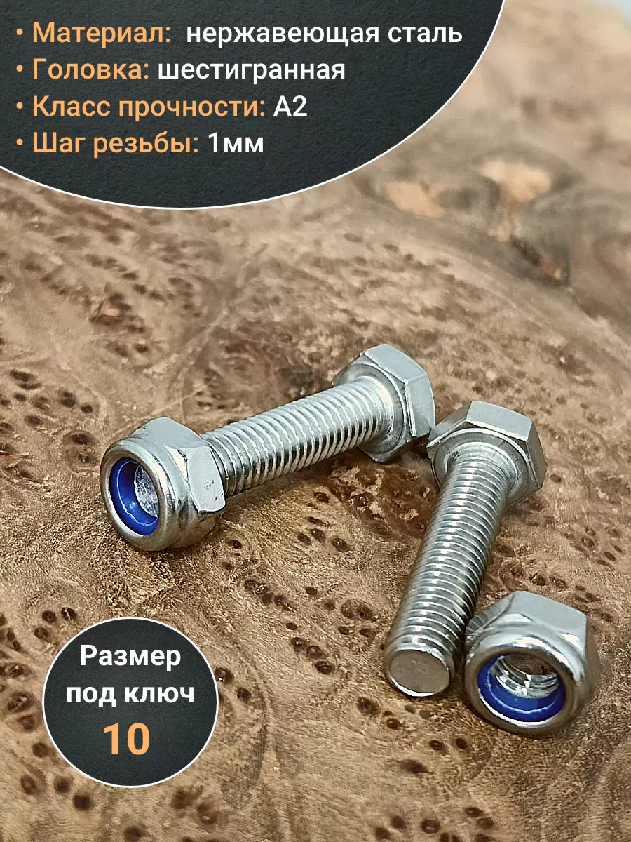 Болт нержавеющий 6х35 мм DIN933 со стоп гайкой,10шт