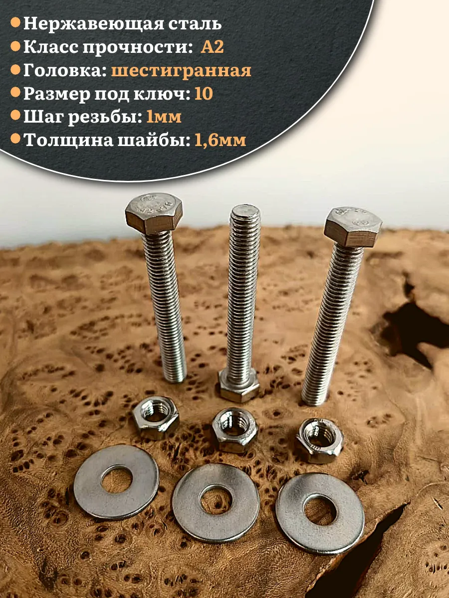 | Болт нержавеющий 6х60 мм DIN933 с гайкой и шайбой, 10шт. | 33338 | 1 шт. |