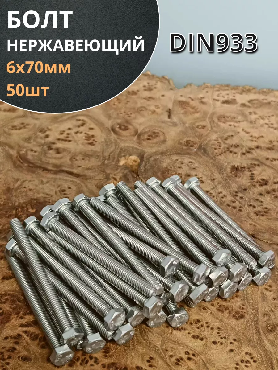 Болт нержавеющий 6х70 мм DIN933 50шт